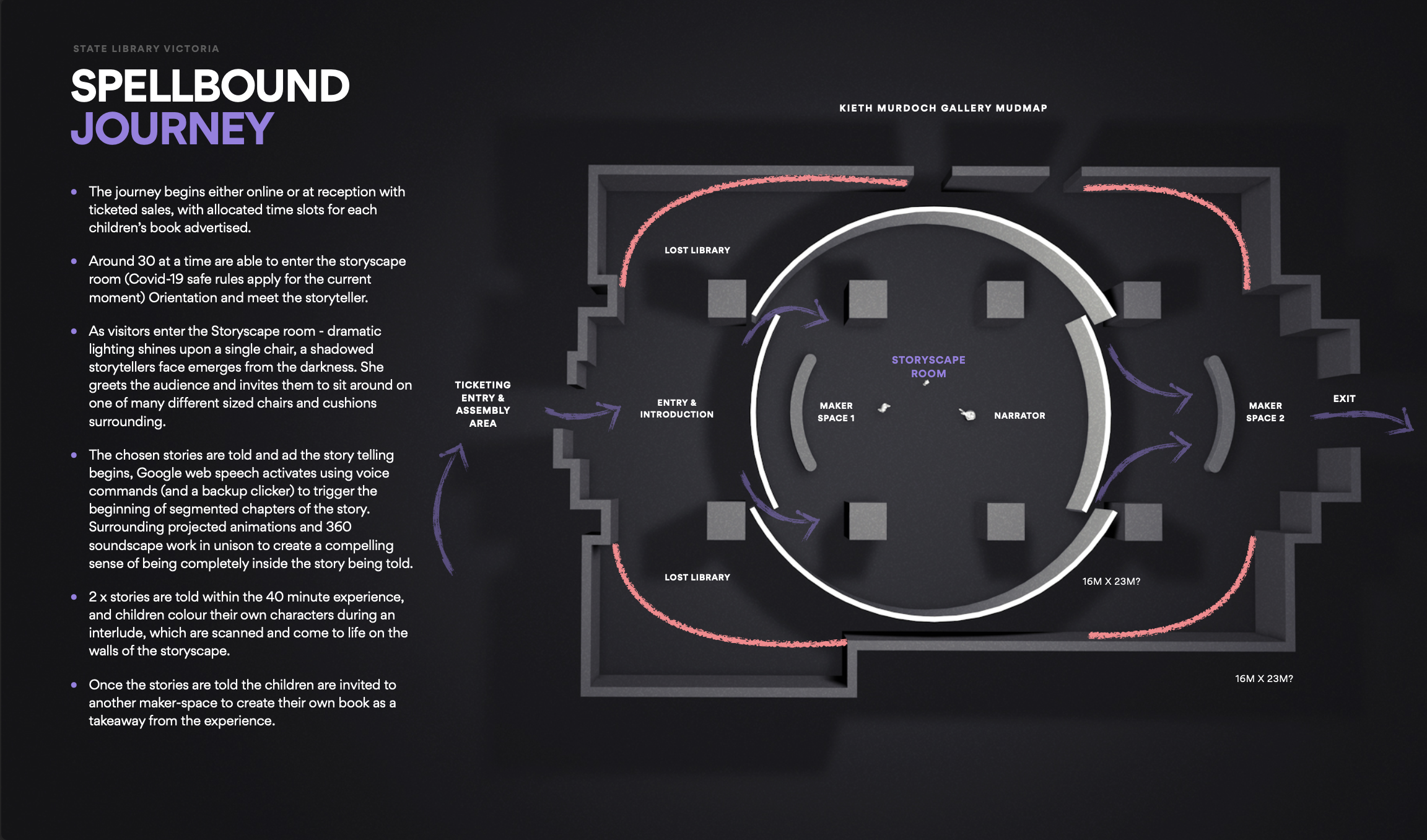 The State Library VIC was looking for ideas around entertainment within their space, combining Australian children’s books and encouraging literacy & oracy.